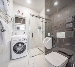- Вся необходимая техника для комфортного проживания: кондиционер, стиральная машина, фен, утюг, TV и Wi-Fi, посудомойка, микроволновая печь, варочная панель и др.;