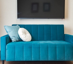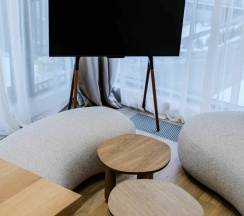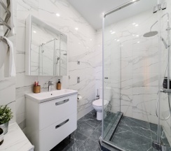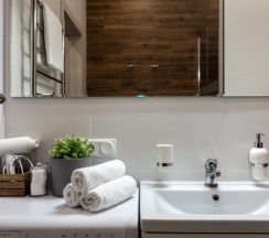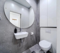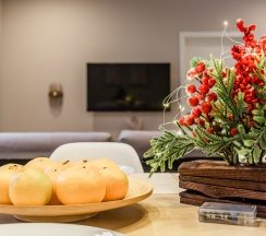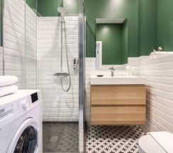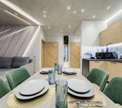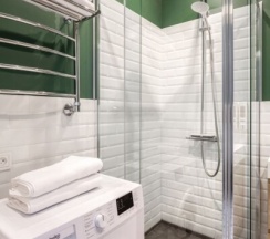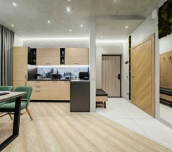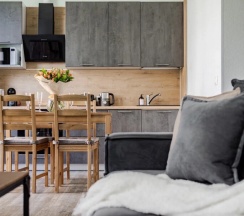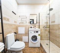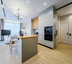- Вся необходимая техника для комфортного проживания: стиральная машина, утюг, фен, TV и Wi-Fi, капсульная кофемашина, посудомойка, микроволновая печь, варочная панель, духовой шкаф и др.;