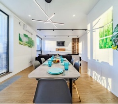 - Вся необходимая техника для комфортного проживания: кондиционеры, стиральная машина, фен, утюг, TV и Wi-Fi, посудомойка, микроволновая печь, духовой шкаф и др.;