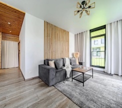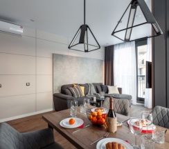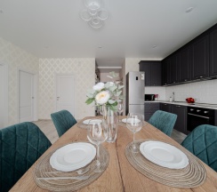 - Вся необходимая техника для комфортного проживания: стиральная машина, фен, утюг, ТV и Wi-Fi, капсульная кофемашина, посудомойка, микроволновая печь, варочная панель, духовой шкаф и др.;