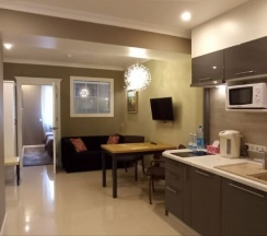 Уютные и тихие апартаменты выполнены в стиле нео-классика и снабжены всеми удобствами – стиральной и посудомоечной машинами, полноценным холодильником, эргономичным кухонным и столовым уголками, удобном креслом, диваном, сейфом, кондиционером и двумя смарт телевизорами.