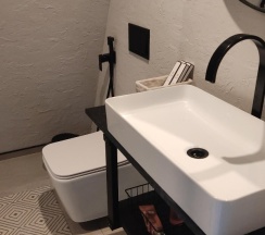 Есть всë для уютного проживания:посуда, полотенца, шикарный душ с отличным напором, мыло, шампунь, гель для душа, гигиенический душ, халаты. Есть даже ватные диски, ушные палочки, тампоны и прокладки.