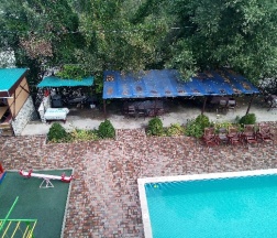 Цена- качество! Приходиться много ездить и это место недалеко от дороги. Очень удобно переночевать и отдохнуть перед дорогой. Место в горах, тихое и спокойное. Море если на машине-пять минут. Кондиционер, и холодильник с телевизором есть в самом бюджетном номере. На заднем дворе детская площадка, бассейн, мангальная и кухонная зоны, большая беседка со столиками, шезлонги. Большая парковка! Приветливый персонал. Хорошее место для тех кто проведя шумный день хочет вечерней тишины и ночной прохлады после жаркого дня.