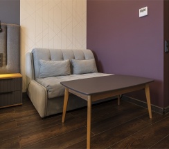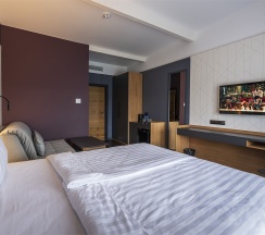 Максимальная вместимость номера 4 гостя, что станет отличным решением для семей (двуспальная кровать и диван-кровать).