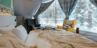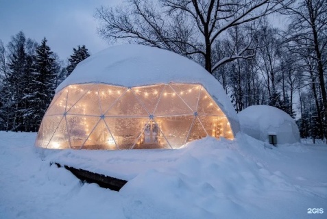 Отдельно стоящий купол площадью 38 кв. м. с панорамными окнами и современными удобствами в атмосфере уединенности и приватного отдыха.