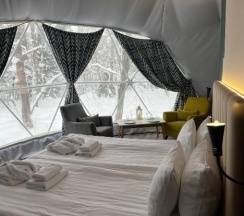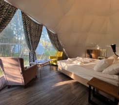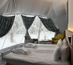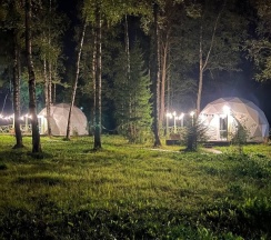 Глемпы отличные, новые, 4 человека помещается, переживали что ночью будет прохладно, но нет, была комфортная температура внутри. Санузел небольшой, но чистый. Мы остались довольны 😄