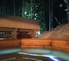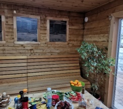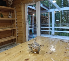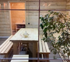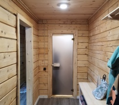Приятная баня, чисто, уютно. Окна в пол - моя любовь. Есть все необходимое - простыни, полотенца, травяной чай. Обязательно нужно заказывать чан с горячей водой на улице, это особое удовольствие