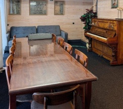 Барнхауз отлично меблирован. Есть всё необходимое: СВЧ печь, кофемашина, тостер, стиралка, холодильник, посудомойка, фен. В двух больших санузлах душевые кабины. Шампуни, бальзамы, гели д/душа, зубные щётки, тапочки. Можно приезжать налегке.
