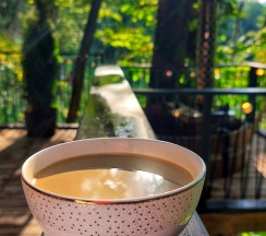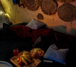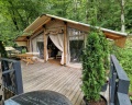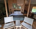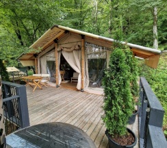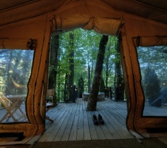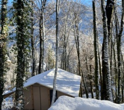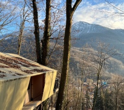 Отлично провели время, для жены это был сюрприз- она в восторге! Высокая лестница после непростой дороги была неожиданным сюрпризом, но администратор Роман помог с доставкой багажа на ресепшн. Кстати, от остановки автобуса 150 м в горку, на легке не ощущаются. Особая благодарность сотрудникам за быструю подготовку шатра и раннее заселение. После небольшого отдыха лестница уже не казалась перепятствием и прошлись по ней еще раз 8 без заминки. В дождливую погоду в шатре получаешь особенные ощущения: вид на горы, лёгкое колыхание листвы, шум дождя. В шатре предусмотрено все для комфортного пребывания, особенно в прохладные дни: обогреватели, теплый пол, пледы для террасы, матрас с подогревом, теплые тапочки. Очень порадовал минибар. Миниколонка с Алисой и увлажнитель воздуха с меняющейся подсветкой добавили приятного к настроению. Ну и конечно же вечерняя фураками ,на террасе, в конце дня была вишенкой на торте. Утренний завтрак на террасе зарядил бодрым настроением и даже скрасил небольшую грусть от мысли, что в пора двигаться дальше.