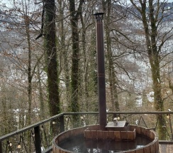 Отличное место для отдыха загородом 👍🏻 в домике тепло, уютно и чисто. На веранде есть купель, где можно погреться вечерком