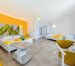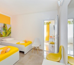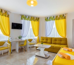 Яркий комфортный солнечный номер в современном стиле с большим угловым балконом.