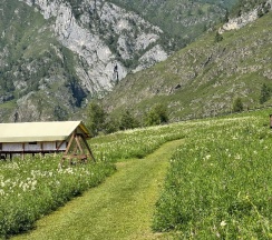 Хорошее место для уединения и удовольствия от горного на 180С• домики стоят на удалении друг от друга. Лакшер-палатки так вообще огонь! 🔥 внутри в каждом жилье своя мини кухня. Своя терраса. Вид потрясающий. Внутри Тепло. Приятные детали и мелочи. Есть даже халаты. Достаточно чисто все. Заботливо аж 4 комплекта тапочек (одни утепленные для террасы.