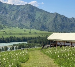 Очень крутое место, обязательно вернемся сюда снова. Отдыхали в шатре, домики стоят далеко друг от друга, очень большая территория, растет много полевых цветов, которыми можно украсить ваше пребывание. Были три ночи, застали и проливной дождь и жару. Шатер теплый, если совсем холодно, есть обогреватели. Вячеслав, хозяин базы отзывчивый и очень добрый человек, который всегда готов прийти на помощь. Спасибо вам большое за такое прекрасное место.