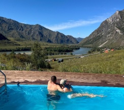 Точка в Горах Алтая - это то место, в которое я влюбилась с первого взгляда ♡. Поражает красота гор! Просотры самой базы и коннчно же хозяева базы Ксения и Вячеслав - очень отзывчивые люди! От них узнали много интересного про природу и места Алтая. Положительных эмоций добавляла собачка Венера! Для нас огоромным плюсом было то, что разрешили разместиться со своей собачкой! Нам очень понравилось проживание в шатрах. Не смотря на прохладную погоду, нам было комфортно. В шатре есть всё необходимое. Два обогревателя, кухня, посуда, холодильник, фен. Хорошо ловил wi-fi. Дети прекрасно проводили время в тёплом бассейне. Ещё хочу отметить баню и чан - это особое удовольствие лежать в чане и созерцать красоту гор и Катуни. Виды здесь на миллион! Неподалёку много красивых мест, которые стоит посетить! С удовольствием вернусь в это место еще! Желаю процветания базе!