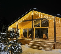 Хорошее место для отдыха, как семейного так и с друзьями. В доме уютно и комфортно, есть игры и игрушки для детей. На территории баня, мангальная зона, детская горка-домик. На новогодние праздники всё было красиво оформлено. Из моментов на которые стоит обратить внимание администрации: 1) территория не была почищена от снега, даже парковка, всё чистили самостоятельно. 2) диван в доме размещён у входа, в зимнее время заметно прохладно, при открытии/закрытии дверей, так как Вы будете ходить на улицу и в дом постоянно. 3) время заезда на пару часов бы пораньше сделать.