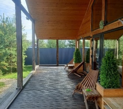 Посетили загородный дом на выходных и остались довольны! Большая территория с соснами, мангальной зоной, чаном и баней. Дом - выше всяких похвал, есть 4 комнаты и 5 спальных мест. Чтобы сгонять компанией - пожалуй лучшее место. Из дополнительных услуг нам понравился чан с режимом джакузи. Баня тоже ничего, но больше конечно это как сауна. Заедем к вам ещё как нибудь!
