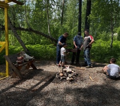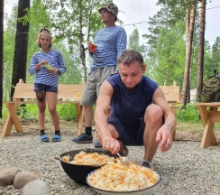 Классное место !! Мы приехали большой компанией и всем хватило места , есть лук и стрелы пострелять эт прикольно !! Лыжи многоножка 😂😂это отдельная история но смешнаааая , вобщем атмосфера 👍, клещи в шоке от того что не подойти в виду того что соблюдена безопасность протравили их , бааааня лютая исходя из вида братьев которые выскакивали из неё как раки 😂😂 и плюхались в басик, там вас сварят в чане ну эт шутка . Спасибо организаторам