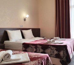 Отдыхали в мае этого года, все понравилось, сантехника целая не течет, не шумит, вытяжка в душе есть, все чистенькое, сколов на плитке нет. На балконе есть сушилка для белья с прищепками. Отсутствие чайника в номере вообще не напрягает, есть графин с ним можно спуститься в холл набрать воды сколько нужно. Одеяла по просили, нам без проблем все предоставили. Что на счет уборки, я думаю люди которые писали, какой кошмар раз в четыре дня, не думаю что вы дома каждый день меняете постельное и полотенца, не вижу ничего ужасного. Если уж что-то пошло не так и у вас слишком грязно можно по просить и у вас уберут. Когда у меня сын мусорил, я просто брала веник и убирала без проблем (веник с совком есть на этаже, так же как и гладильная доска с утюгом) все зависит от вас самих, не ведите себя как свиньи и в течении 4-х дней у вас будет порядок. Нам все понравилось в этом отеле, с удовольствием приедем еще раз. Фото соответствуют, красиво и уютно. Вкусный шашлык, в столовой вкусно кормят, музыка абсолютно не мешала, в конце концов это отдых. Детям есть чем заняться, на территории есть площадка и теплый бассейн. Что еще нужно. Взрослые тут же на территории могут сходить в барчик вечерком. Море в двух шагах, паралея рестораны. В общем все гуд 👍🏻🫶