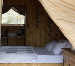 Крутое место! Рядом Салтинский водопад, село Салта и ещё возле виллы есть мини водопад, где можно искупаться. Очень понравилось это место! Для приготовления еды есть всё необходимое: посуда, молотый кофе, турка, чай, чайник, плита, сковорода, соль, перец, мини холодильник, на террасе можно приготовить и покушать с видом на горы! Уютная палатка с кроватями, свежее постельное белье, одеяло, полотенца. Выдают ключ от душевой кабины (бойлер, душ, туалет), которой пользуетесь только Вы, что очень круто, на мой взгляд. Один минус для меня - в магазин приходилось подниматься в село Салта, в селе три магазина, но ходить долго, лучше закупать продукты перед поездкой и ехать уже с заготовками:) отдельное спасибо Юсуфу - на все вопросы отвечал, всегда помогал нам!
