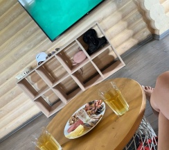 Давно хотела оставить отзыв, но никак не доходили руки 😁 Бронировала домик 30 августа 2023 года, решила мужу сделать подарок на день рождения. Так замечательно мы не отдыхали давно. Дом функциональный, всё есть, чисто, красиво. Никаких мух у нас не было 😅😂 никто нас не атаковал из насекомых 😁😅 Мы заехали, расположились, пожарили шашлыки и пошли в баню. Баня просто супер класс, а чан с видом на горы и на лошадей ☺️🤗 вообще сказка 🤗☺️ Мы брали с собой купальники, сланцы и халаты, поэтому у нас не было проблем с тапочками, халатами и т.д. 🤪😆 Брали с собой колонку, веселились, танцевали и при этом никому не мешали, так как звук был как говорится только для нас, а не для всей базы 😊 В других домиках тоже были гости, но никто ни кому не мешал вообще, ночью никто не шумел, музыку не слушал, все спали 😄 Утром выспались, приняли душ и наверное нам как позитывным людям повезло 🤭😆 вода была абсолютно нормальная, как и дома 😁 позавтракали ( брали с собой продукты ), спокойно собрались, никто нас не подгонял и не торопил 👍 за что отдельное спасибо ♥️ и поехали на Бердские скалы 🤗 Ооо это как мини Горный Алтай 👍 следующий пункт назначения был водопад Бучило 👍 Вообщем выходные прошли на ура 👏 Нашей семье всё понравилось без исключения. Минусов мы не увидели нигде. Вернёмся обязательно и с удовольствием 😉 Побольше вам позитывных отдыхающих 😁😉