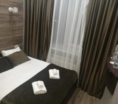 Новые стильные номера. Но очень компактные, нет даже стола и стула (в самом дешёвом варианте). В номере есть чайник. Номера достаточно тихие. Есть вся гигиена, даже зубные наборы одноразовые. Чай, кофе, вода питьевая в номере есть.