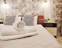 Прекрасные, удобные апартаменты. Проживали в корпусе 4/2, интересная конфигурация номера, но к качеству претензий нет, просторно, всё в наличии и чистоте.