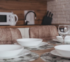 В доме все новое, а самое главное чистое! Современный ремонт. Первое на что обращаю внимание, когда снимаем жильё, это посуда и как правило всегда приходится перемывать. К моему удивлению, здесь отмыто всё до блеска. Есть вся необходимая утварь посуда, постель, шампура, доски, туалетная бумага, фен, стиральная машинка и даже порошок!