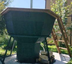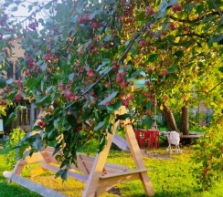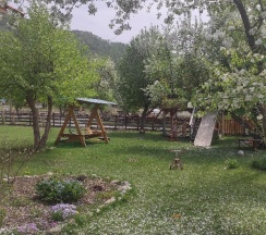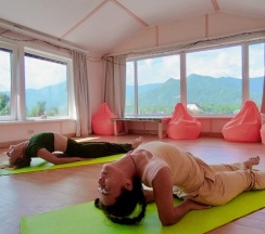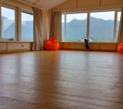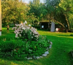 На усадьбе есть зал для занятий телесными практиками, массажный кабинет и баня с чаном .