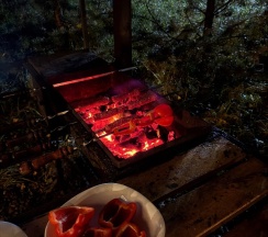 Ну а вечером ждал вкусный ужин на мангале и посиделки у костра под сериальчик.