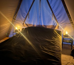 Отличный глэмпинг, домики новые, уютные и чистые. В домиках есть все необходимое из посуды и туалетных принадлежностей.
