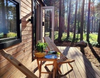 Отличное место для отдыха от городской суеты. Выходишь из домика и сразу попадаешь в лес, а там грибы, черника — собирай не хочу. В самих домиках есть всё необходимое (даже WiFi), но главное, зачем вообще сюда ехать, это панорамное остекление.