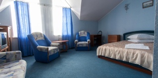 Большой и просторный полулюкс с двуспальной большой кроватью. Номер с улучшенной планировкой, с оборудованной гостиной зоной. К услугам гостей телевизор, холодильник, просторная ванная комната с душевой кабиной.