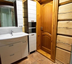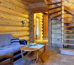 Двухэтажный коттедж из массива кедра, идеально подходит для семейного отдыха. На первом этаже: уютная гостиная с камином и мягкой зоной отдыха, оборудована кухонная зона. На втором этаже две спальни, с выходом на застекленную лоджию, с мебелью из ротанга