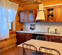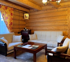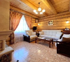 Двухэтажный коттедж из хвойных пород дерева, отлично подходит для семейного отдыха или для небольшой компании. На первом этаже: гостиная с камином и мягкой зоной отдыха, оборудована кухонная зона. На втором этаже две раздельные и просторные спальни.