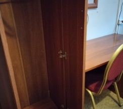 Не понравилось: Дверь плохо закрывалась, открывалась, персонал не приветливый, дали ключи и сказали искать в соседнем здании, в номере было холодно пока не решил посмотреть в окно, оно было открыто и за занавеской этого не видно, мелочь а неприятно мог замёрзнуть, сырые одеяла, прям неприятно было, ванная прохладная плитка без ковриком, держатель душа сломан, унитаз тоже не внушал оптимизма, ванная грязная, там что то лежало и оставило грязные следы которые просто не смыть, ещё и полотенце валялось прям в ванной, общий антураж прлизвел впечатление разрухи, телевизор был на дальней стене, и маленький больше для шума на фоне, электрика вызывала опасение. В целом переночевать по работе пойдет, но вот оставаться дольше нескольких дней яб не рекомендовал, ну и темболее девушку не в коем случае нельзя приводить в такой номер.