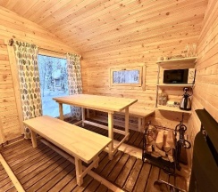 Отдыхали в марте, замечательно провели время, попали на выходные, у ребят был организован праздник Масленица- очень весело, задорно и с погодой очень повезло! В коттедже чисто, уютно, есть самое необходимое. Спасибо за мешок угля для гостей в домике, очень пригодился. Отдельная благодарность гиду Александру, до последнего катались в поисках Северного сияния, нашли! Учли наши пожелания на завтрак. Приятное место!