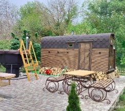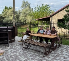 Нас встретили, погрузили сумки на местный транспорт, помогли добраться до беседки, подали чай в самоваре, накормили вкусным обедом!