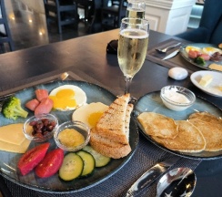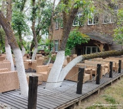 Провели с коллективом прекрасный выходной, на базе отдыха Фрегат! Вся территория очень большая, зеленая и ухоженная. Можно скрыться жарким днем от солнца в тени больших деревьев, прогуляться пешком или покататься на велосипедах по набережной. Классно просто почилить на террасе около ресторана. Стоимость велопроката подсказать не могу, так как у нас был коллективный заезд и некоторые платные услуги у нас были включены в стоимость дневного пребывания. Лучше, конечно, уточнить у администратора. Кстати, Ольга милая и отзывчивая девушка. Все вопросы решались быстро и в положительную сторону. Так же в комплексе нашего пребывания мы посетили ресторан. Еда выше всяких похвал. Спасибо, было очень вкусно! На втором этаже над рестораном, зона отдыха и игровая. Можно поиграть в бильярд, аэрохоккей и попеть песни в караоке. Так же на территории есть бани, где можно погреться после зимней рыбалки. В общем прекрасно провели время, есть конечно некоторые но… На территории идут строительные работы, я так поняла, что у базы новые владельцы и реновация идет полным ходом. Зона ресепшна и гостиничные номера со свежим дизайнерским ремонтом. В том числе, обещают в скором времени достроить бассейн, в котором можно будет поплавать жарким днем. Очень хочу вернуться сюда, когда его откроют. Спасибо за отдых…..