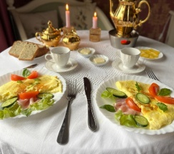 Завтраки - лаконичные яйца в трех видах, кашки великолепный кофе и чаи, а подача, просто великолепная!!!