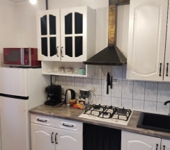На кухне есть все чтобы приготовить перекусить. Холодильник, сковородка, кастрюля, посуда, эл.чайник, микроволновка. Даже электро кофеварка есть. Не пользовался.