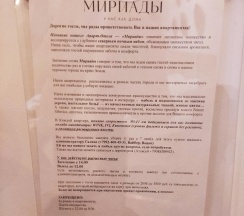 Не в первый раз снимали квартиру в агентстве Мириады и как всегда остались очень довольны !!! Квартиры всегда чистые и уютные, администратор клиентоориентированна, 5 баллов из 5-ти. Агентству желаю только процветания и порядочных клиентов !!! Рекомендую !!!