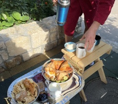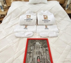 В отеле все подобрано со вкусом, интересные картины , разные статуэтки , халаты с вышивкой отеля, мыло , щётки и тд. Ну и конечно , нам очень понравился завтрак, сытный, эффектно поданный через окошко.