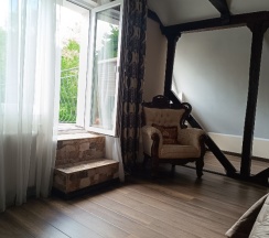 Отличный номер, аутентичная мебель, есть кухня на первом этаже, рядом кафе в парке.