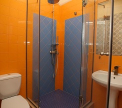 1. Номер. Маленький, нужен был с 2мя раздельными кроватями, таких нет, пришлось спать на крошечной софе раскладной. Она , конечно, для детей, но уж очень жёсткая. В душевой могут протекать швы. Одна розетка, так что берите хотя бы тройник. Есть комары, фумигатор тоже берите. Фена нет, но хотя бы чайник в номере, тв имеется. Соседей через стену не слышно, но входная дверь буквально смешная, через неё звуки проходят.