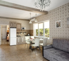 Отличный отель, если вновь будем в Геленджике, то только здесь остановимся. Номер 80 кв м - отличный, чистый, упакованный, в каждой комнате кондиционер, два телека, кухня, терраса со столом, качелью, тихая улочка. Везде близко, до моря 7 мин неспеша. Очень рекомендую
