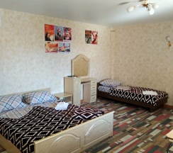 Снимали 4-хместный номер. Понравилось безумно! Отличное место! Чисто и уютно! Есть всё для замечательного отдыха: бассейн, баня, прекрасный вид на лиман, чисто и аккуратно, мангальная зона. Хозяева замечательные люди Галина и Андрей! Встретили в 3 часа ночи, всё показали, рассказали. Баню затопят по желанию, бассейн всегда держат в чистоте, территория вся в цветах и фруктах, чистота, как в лучших отелях. Сразу видно люди делают не для денег, а для хорошего приятного отдыха! Есть всё для комфорта: 2 кухни, в каждом номере туалет, раковина и душ, кондиционеры, телевизоры, кровати удобные, бельё всегда чистое, номера убраны, спасибо Галине! Холодильник, плита, чайник, микроволновка, мангал просто обалденный, баня и стиральная машинка за символическую плату. Ребёнок в восторге. Мы тоже ещё под впечатлением. Конечно не на берегу моря, но это я считаю лишнее в Витязево, мы гуляли у отелей у моря, там шумно, всегда кто-то кричит, машины ездят, под окнами рынок и палатки, тут же тишина и спокойствие, можно пожарить вечерком шашлычок, поплавать в бассейне. Кстати грязи, на которые все ездят специально, находятся в 3 минутах пешком, можно дойти, намазаться, высохнуть, вымыться в лимане и всё это совершенно бесплатно и стоит лишь обойти 2 дома.