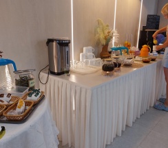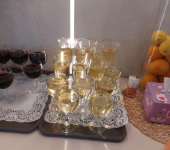 Завтрак за 4 дня был разный. Можно выбирать из 2х вариантов. На завтрак стоит белое, красное вино, шампанское! Есть маленький бар с хадыженским пивом по 100р.