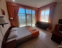 Понравилось: Отличный "свежий" отель, хороший ремонт, мебель и сантехника новые, чистое новое бельё. Смена белья каждые три дня. На каждом этаже кулер, чай, кофе, сахар. В сезон есть 3-х разовое питание. На крыше отеля есть бассейн с видом на весь город. Очень радушная хозяйка Альвина. До пляжа минут 7-10 медленным шагом. Рядом автобусная остановка и парк аттракционов.