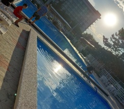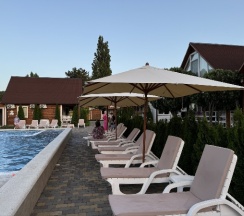 В стоимость дневного пребывания, я считаю, оооочень конкурентоспособную для такого отличного места, входит пользование всей инфраструктурой морской дачи и аренда одной из беседок. Итак, бассейн...Наши друзья, отдыхавшие в самых разнообразных отелях, скажем так, "высшего эшелона", сказали, что это самый чистый бассейн среди всех, которые им встречались. Вода была оптимальной температуры, есть отдел для детей, глубина "взрослого" раздела - не лягушатник. Шезлонги- их в предостаточном количестве, с зонтиками и без, а полотенца, которые выдают, ну просто отличные - мягкие, приятно пахнут, не выстиранные. Санузлы на территории, что для меня всегда показатель, чистые, светлые, со всем необходимым для гигиены. Отдельно хочу отметить озеленение территории - со вкусом, ухоженно. Вообще на территории приятно находиться.