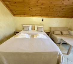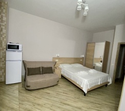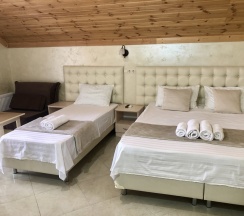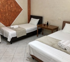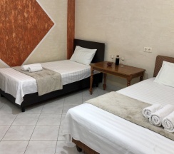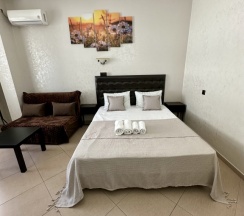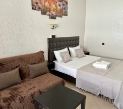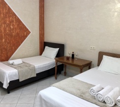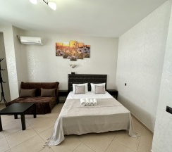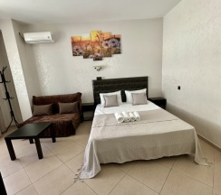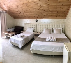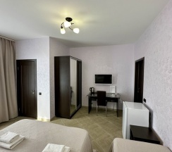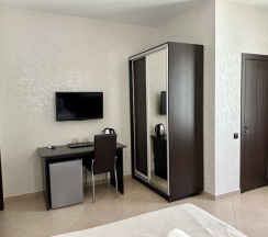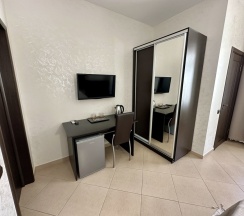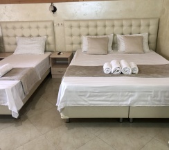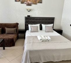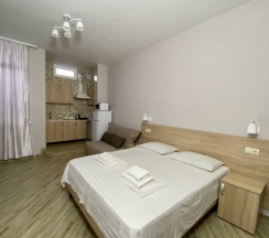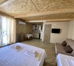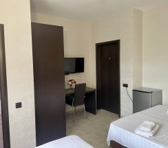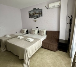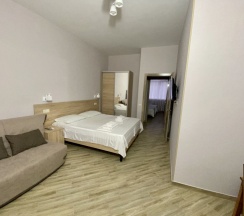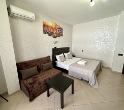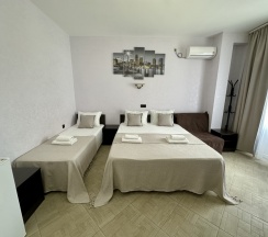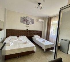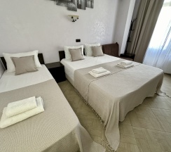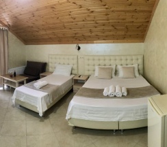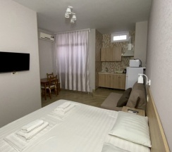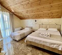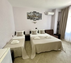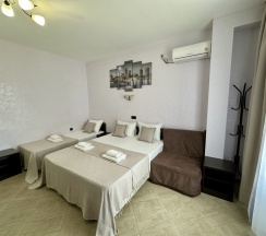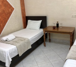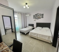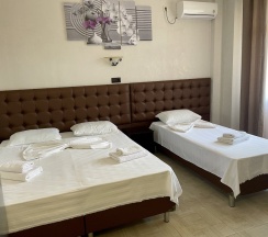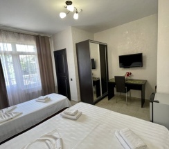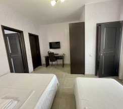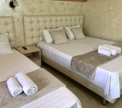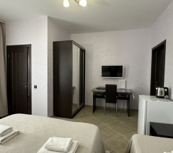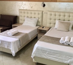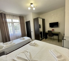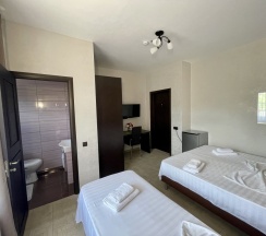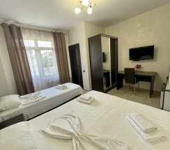 Замечательный отель. Отдыхали с 2я детьми,номер взяли на 2 комнаты. Хозяева отеля замечательные люди,чуткие,отзывчивые помогут решить любую проблему,подскажут куда сходить и где вкусно покушать или заказать еду,на какие экскурсии сходить. Отель очень чистый,ухоженный. Есть бассейн и площадка для детей с разным оборудованием( батут,велики,самокаты и т.д.) в 15 минутах ходьбы на море.